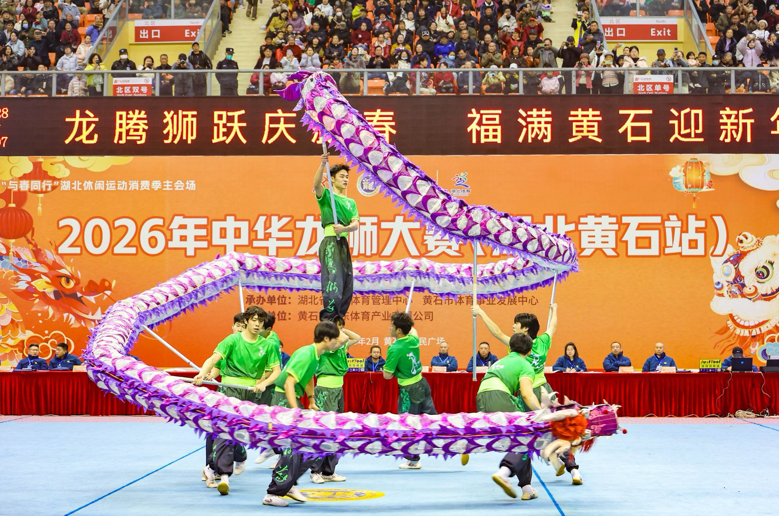 3月1日,2026年中华龙狮大赛(湖北黄石站)在黄石体育馆落幕。本次赛事汇聚全国24支高水平龙狮队伍同台竞技,湖北大学龙狮团在领队梅林琦老师及教练吴冰涛、覃圆媛、赵姿琪的带领下,凭借扎实功底和稳定发挥,斩获一银一铜,展现了湖大学子的风采与竞技实力。